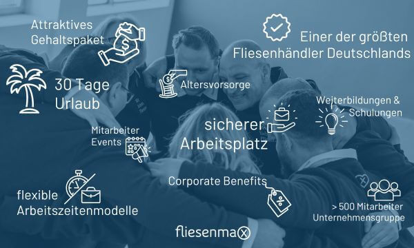 Fliesenmax ist ein mittelständisches Familienunternehmen und steht seit über 30 Jahren für Qualität, Kompetenz und Innovation. Gemeinsam mit Dir wollen wir jetzt unsere Zukunft gestalten, denn wir sind überzeugt: Unsere Kollegen sind der Schlüssel zu unserem Erfolg.